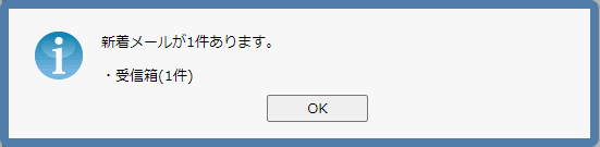 新着メールがある場合には、新着メールの届いたフォルダーと通数が表示されます。「OK」をクリックすると、それまでメールを確認していた画面に戻ります。