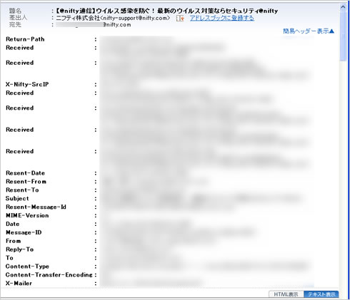 ※メールヘッダー情報は、「通常モード」でのみ表示可能です。