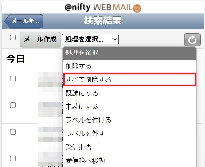 メールを選択して削除