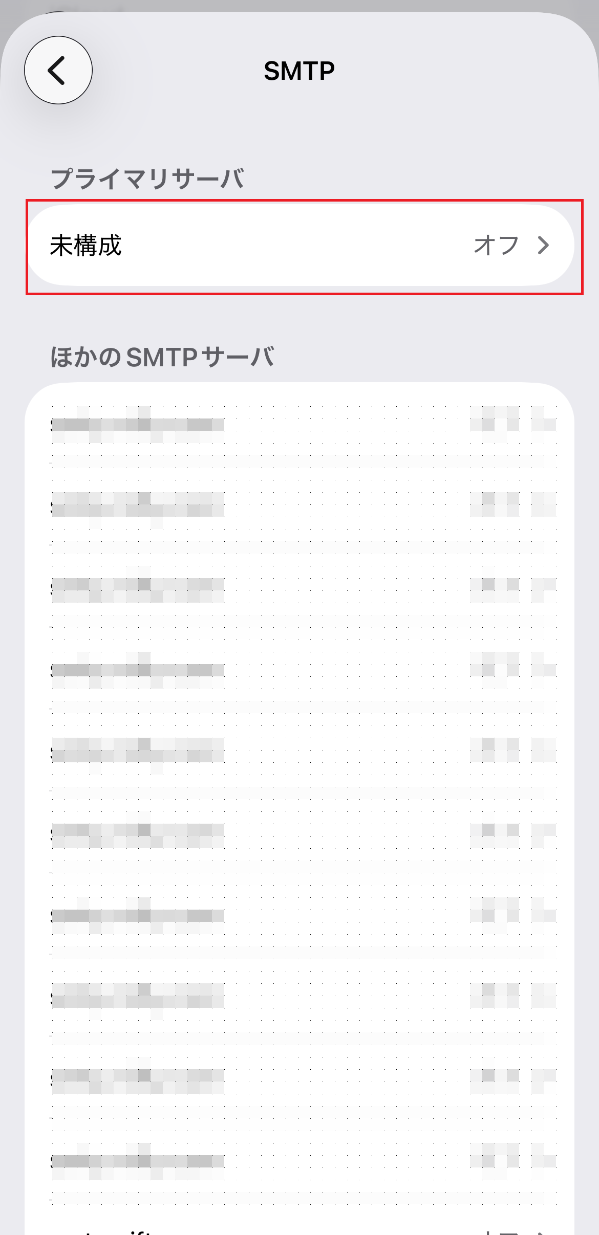 12.「プライマリサーバ」欄にある [ 未構成 ] もしくは [ smtp.nifty.com ] をタップします。