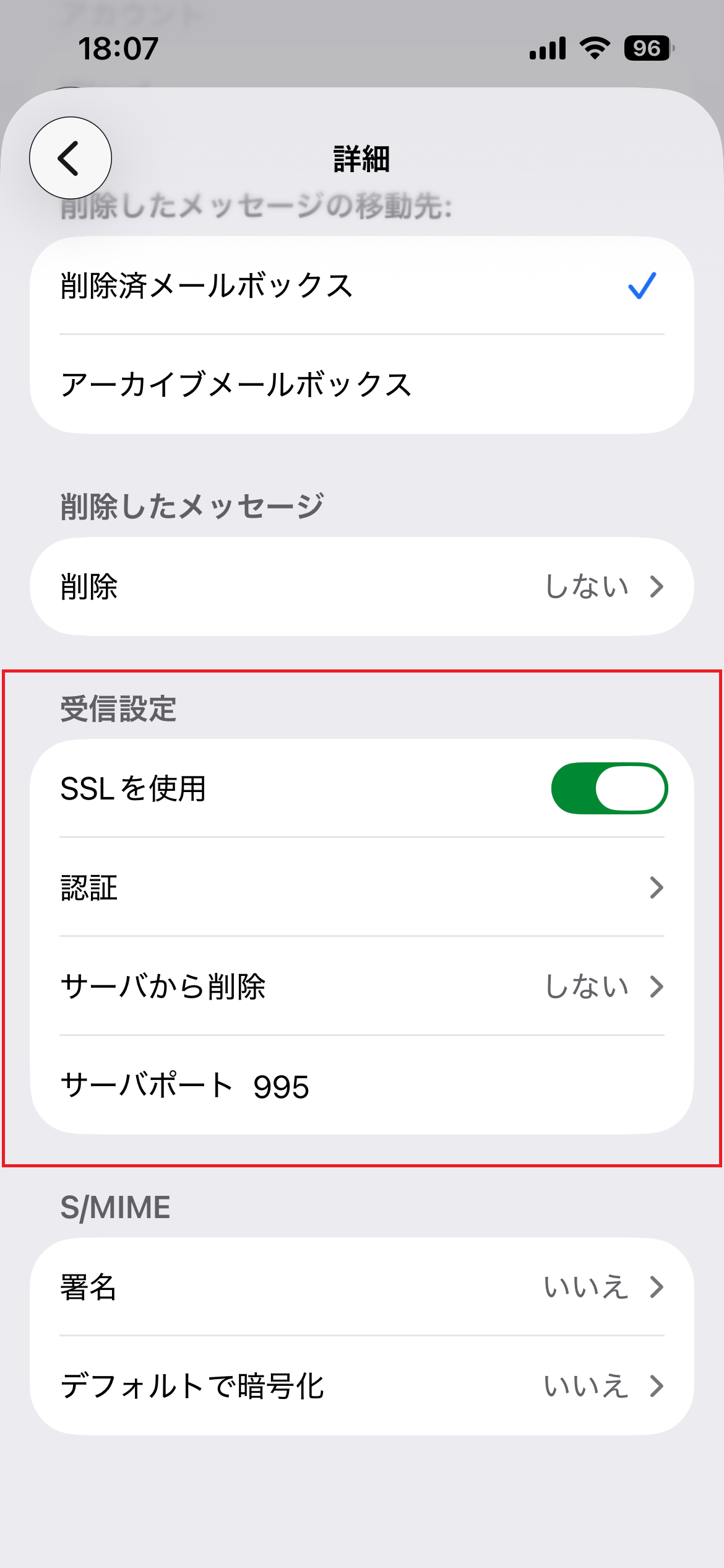 ※ 前の画面に戻るには、画面左上の戻るボタン(<) をタップしてください。サーバポート 995