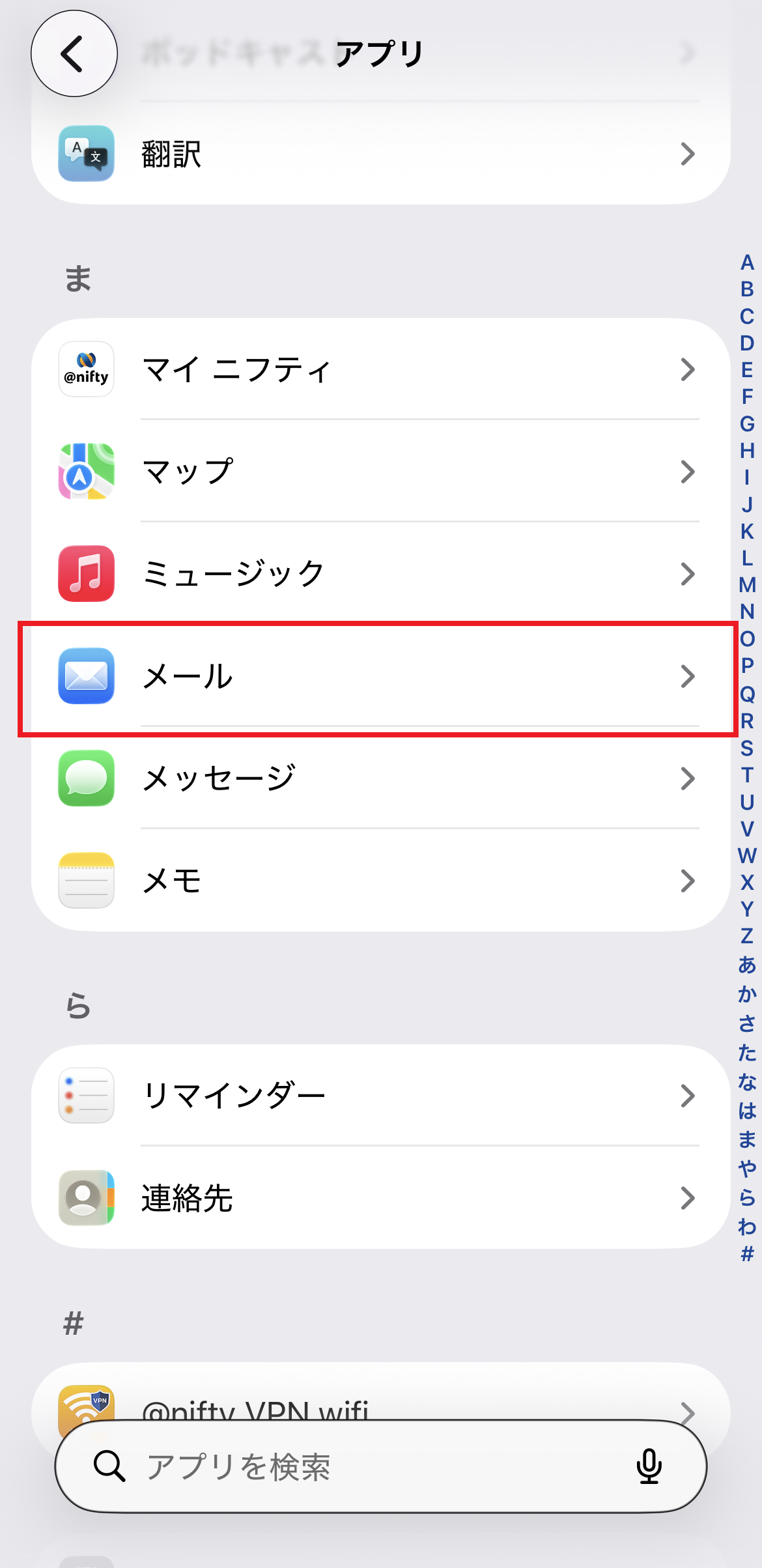 3. 表示されたアプリの一覧から[ メール ] をタップします。