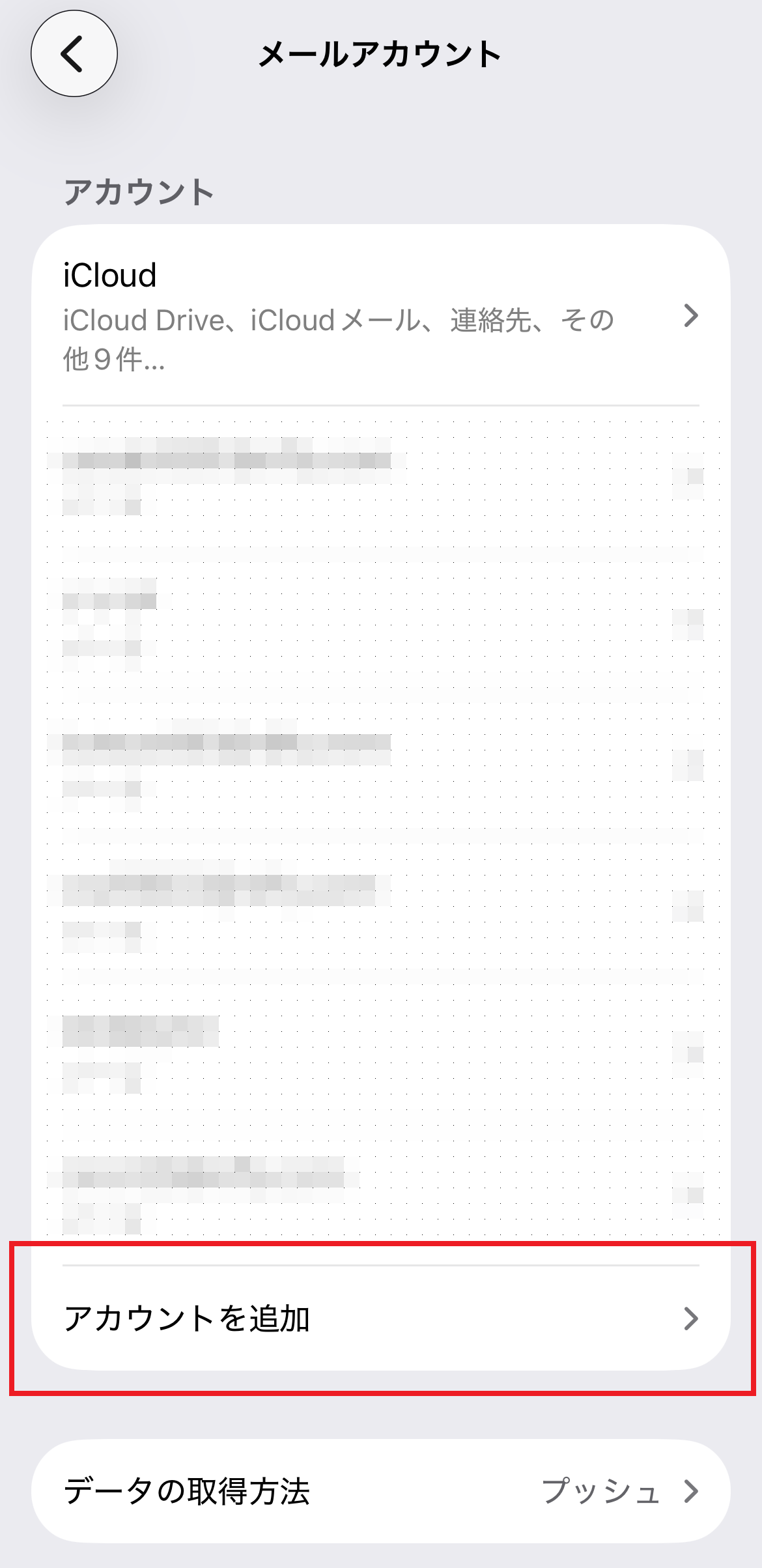 5.「メールアカウント」画面が表示されます。[ アカウントを追加 ] をタップします。
