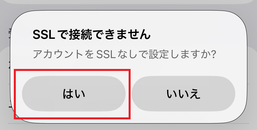 [OK]または[はい]をタップし、入力したホスト名、メールアドレス、パスワードをご確認ください。