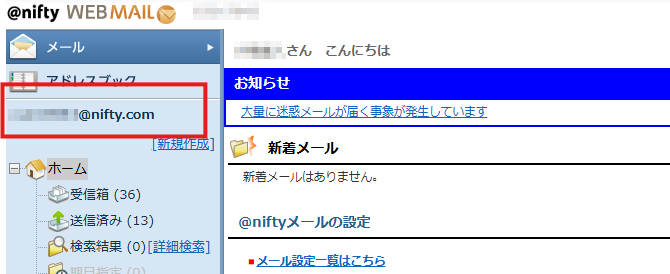 Webメールの上記位置(メニュー上部)に表示されているメールアドレスを変更できます。