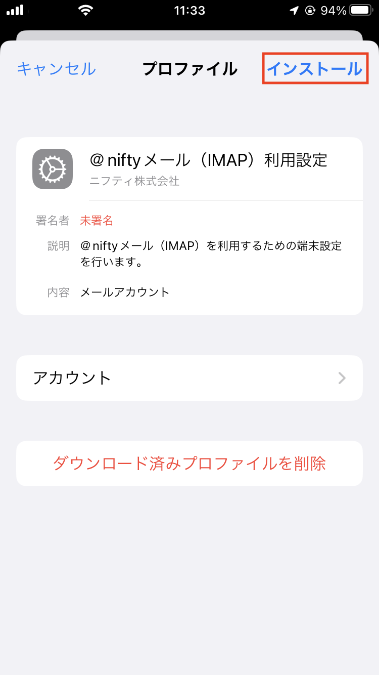 iOSのIMAPメールソフト設定方法(メール設定構成プロファイルを利用した設定)