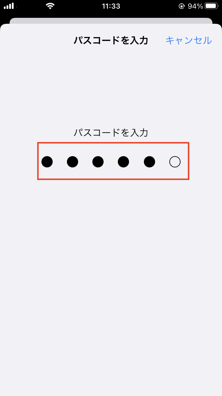 ※ 入力するパスワードは端末のパスワード(パスコード)です。
