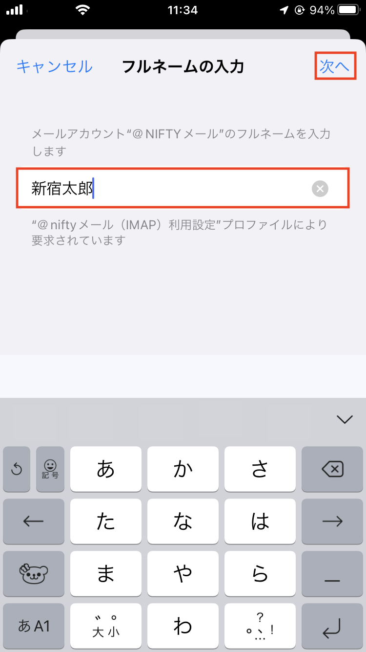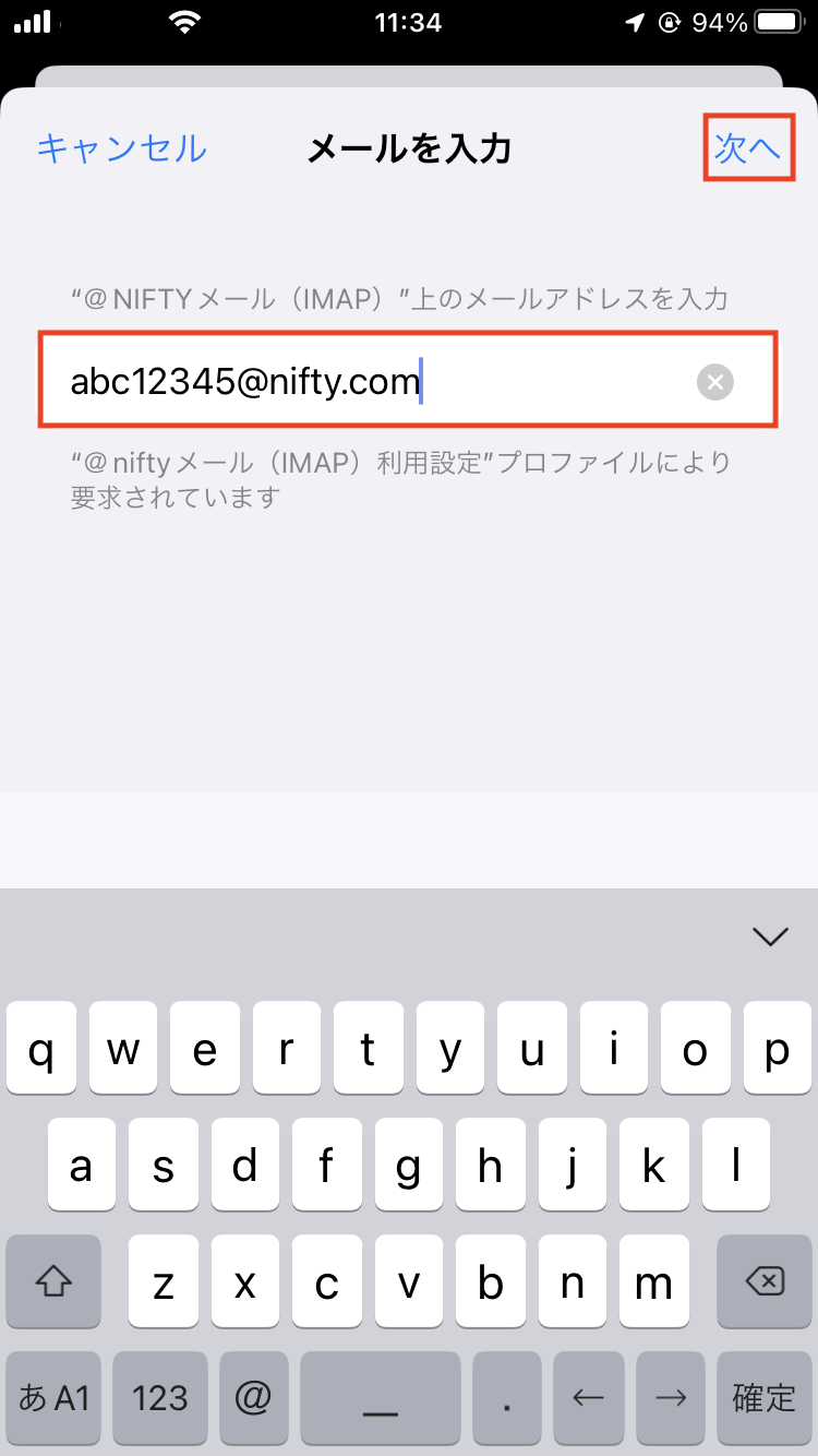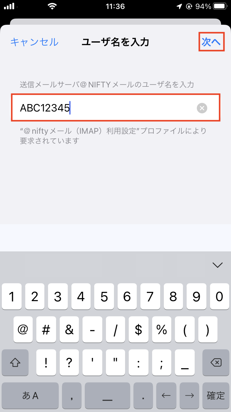 10. @nifty IDを入力して、「次へ」をタップします。
