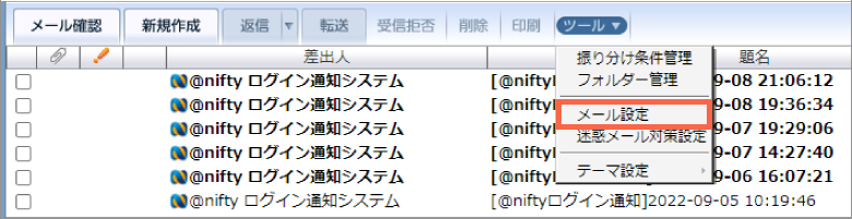 設定状況はWebメールの「メール設定」メニューよりご確認ください。