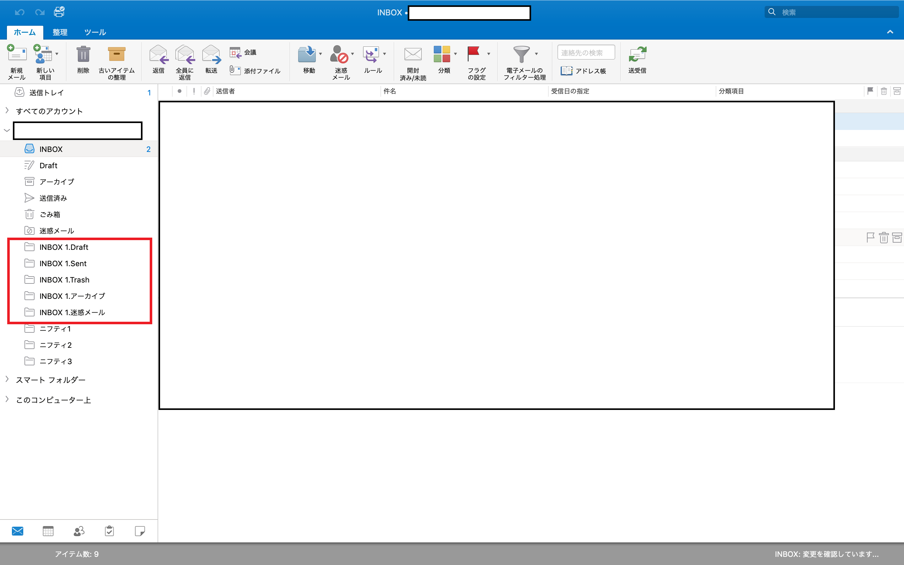 1.「INBOX.○○○」というフォルダが切り替えによって作成されてしまう場合があります。