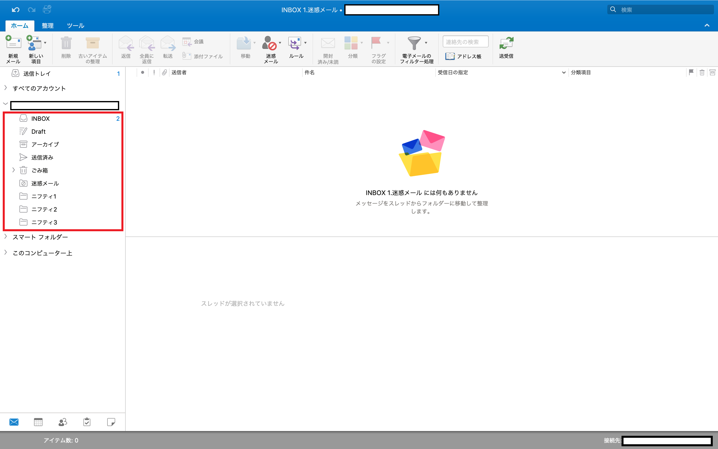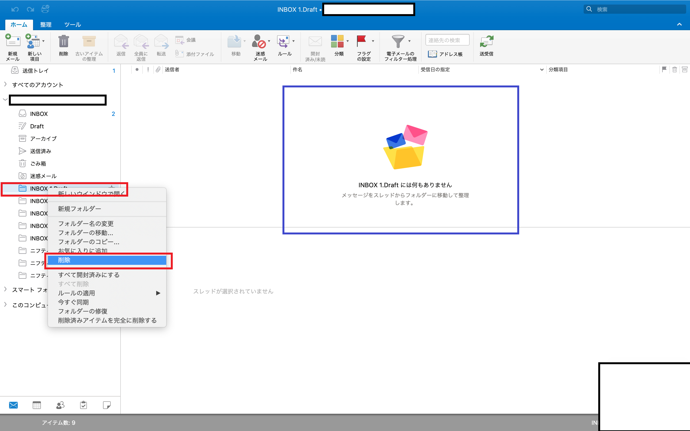 もしメールが入っている場合は、メールを意図せず作成されてしまったフォルダ以外に移動をお願いいたします。